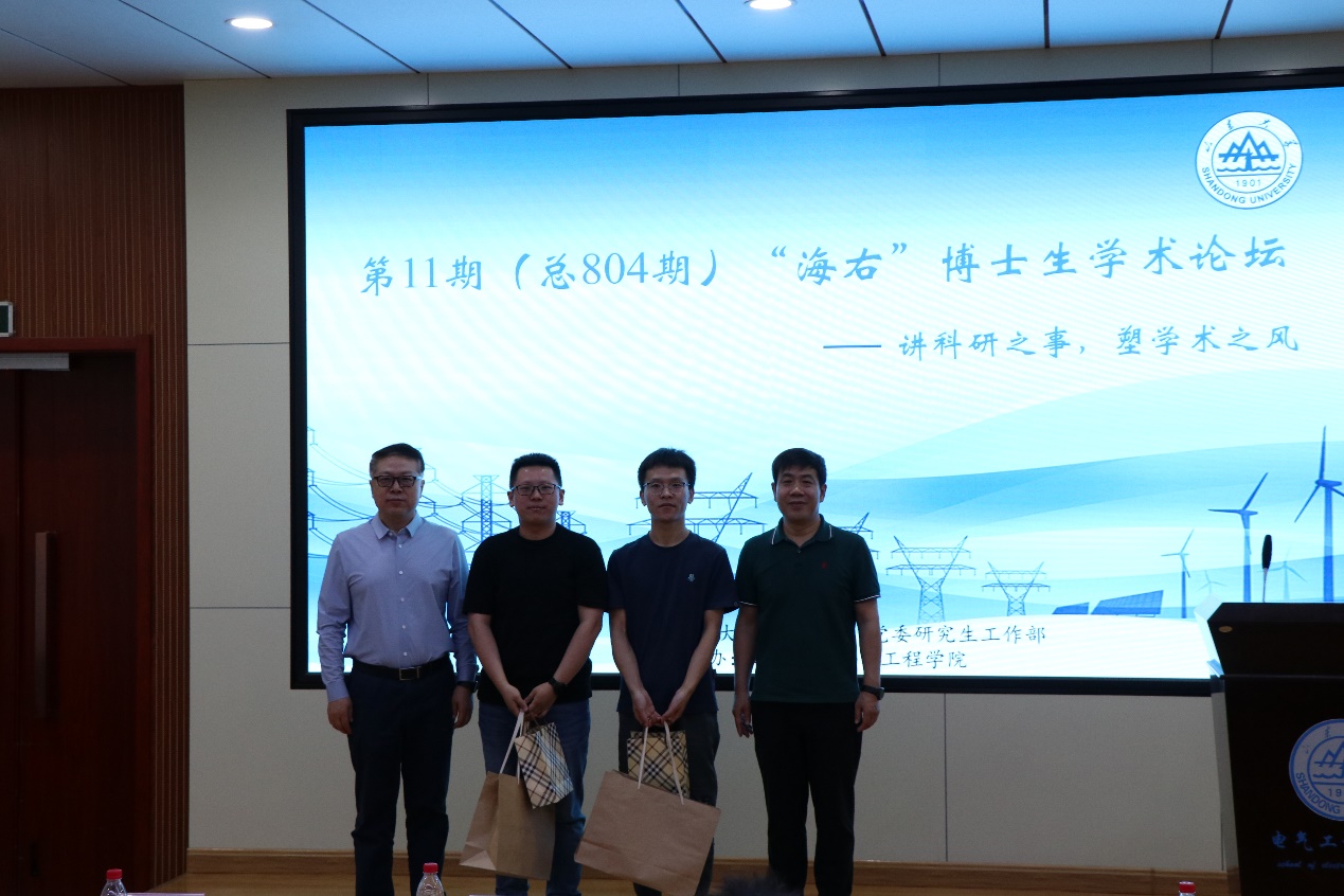 6月8日,由yl23411永利集团官网研究生院、党委研究生工作部主办,yl23411永利集团官网承办的第11期(总804期)“海右”博士生学术论坛在千佛山校区电力楼报告厅如期举办,此次论坛邀请2019届博士研究生邢泽智、李亚辉作为主讲嘉宾,yl23411永利集团官网党委副书记宋思利、教授李可军作为点评嘉宾出席论坛,学院研究生会孙丰斌主持。