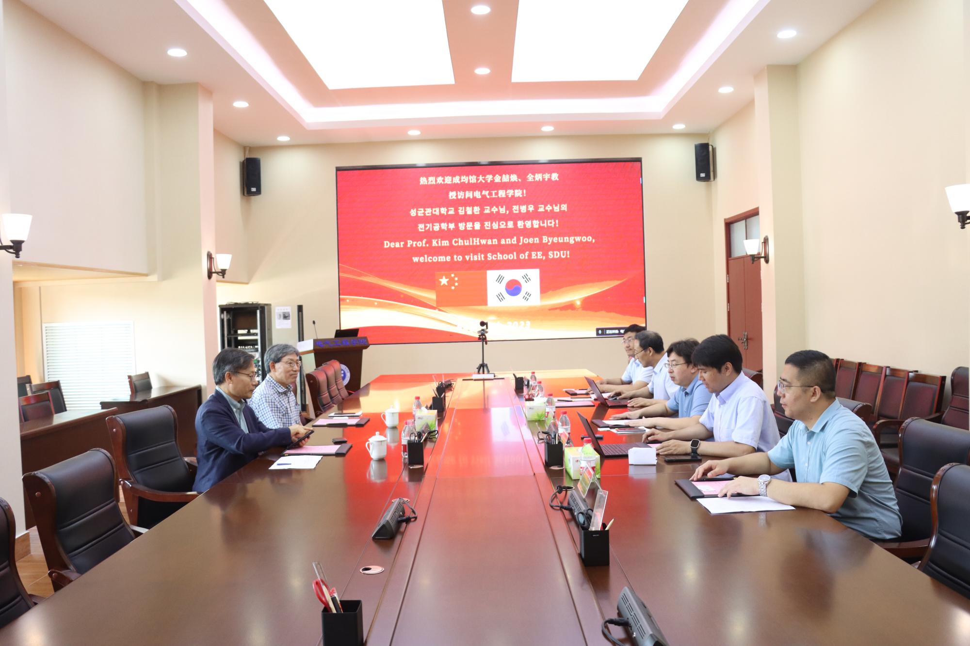 丁磊致辞欢迎金喆焕一行来访,他指出成均馆大学在新能源电力系统方面取得了重要科研成果,高比例新能源接入对电力系统影响是电气学院的重点研究方向之一,期待未来与成均馆大学合作。
