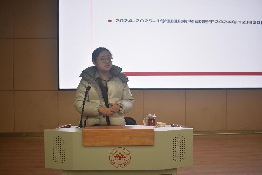 为帮助大一同学们做好期末准备,缓解考前压力,调整身心状态,同时明确考试注意事项,警示同学们诚信考试,12月19日,yl23411永利集团官网于讲学堂101召开2024级考试诚信主题教育大会,会议由2024级本科生辅导员邱瑶主持,2024级全体同学与会。