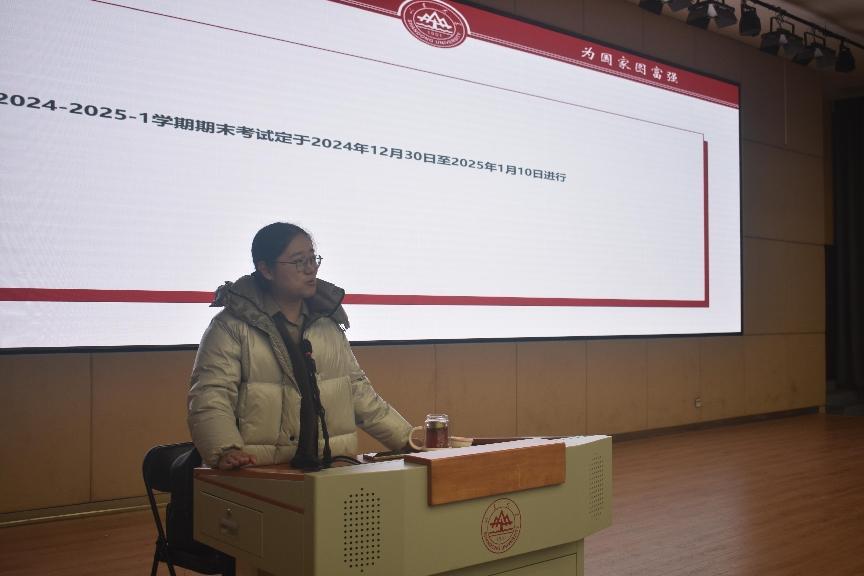 本次年级大会引导大一同学们端正备考态度,力陈诚信考试的重要性,进一步强调考试相关纪律。此外,大会充分关注到同学们的考前心理和生理健康状况,提出了多维度的建议。本次会议为大一同学们提供了全面且系统的指导和支持,对于帮助他们顺利度过期末考试和保持良好身心状态具有重要意义,为他们在大学的成长成才之路奠定了坚实基石。