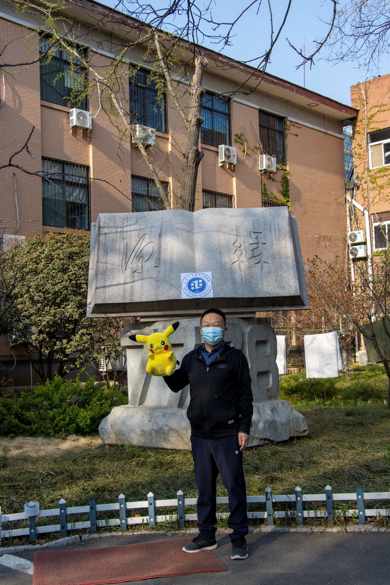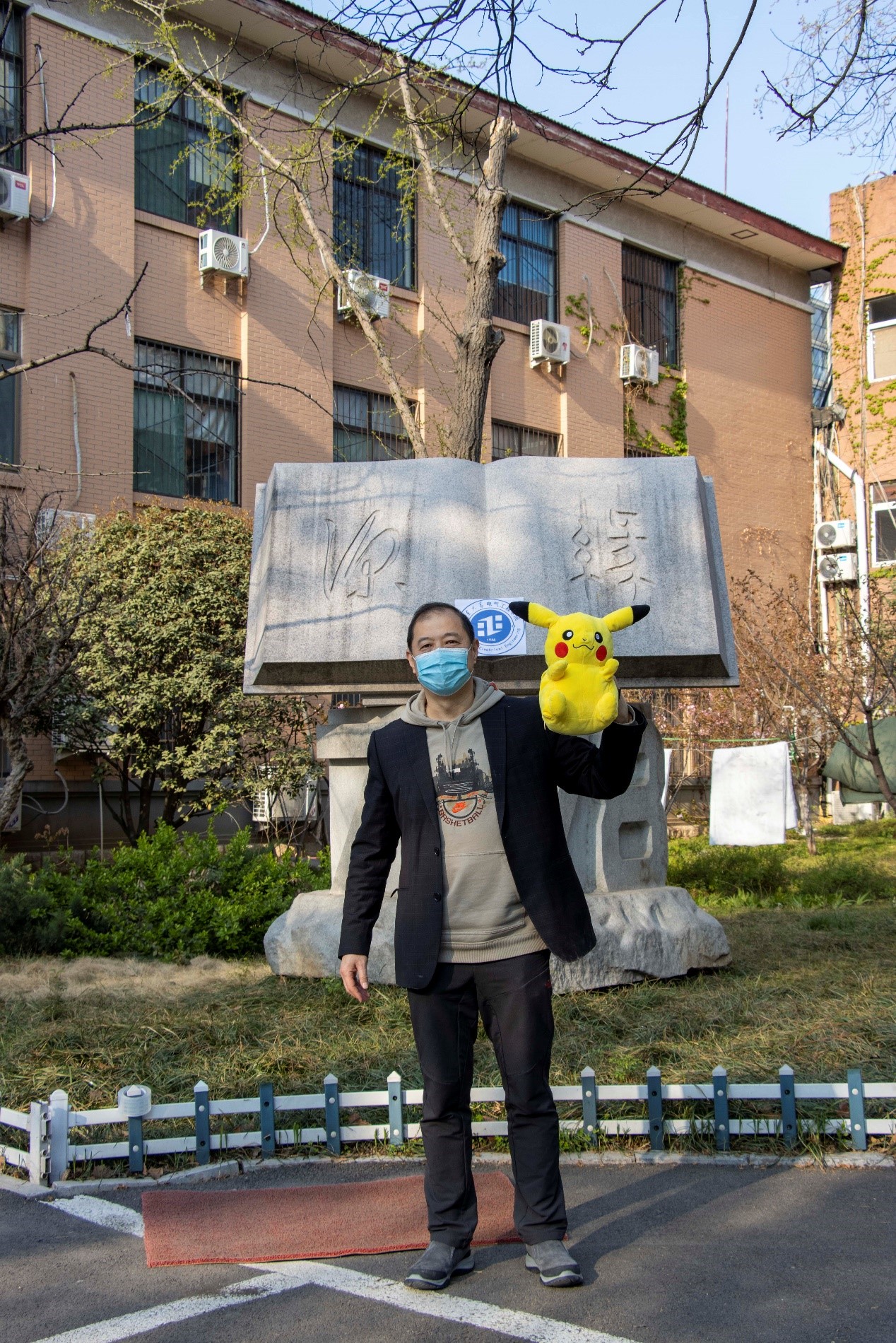 致辞结束后,殷录民、丁磊、宋思利与宋济平共同开启了打卡活动的序章,在5号楼前的首个打卡任务点与电气吉祥物皮卡丘进行合照,为后续同学们的打卡活动做出良好表率。