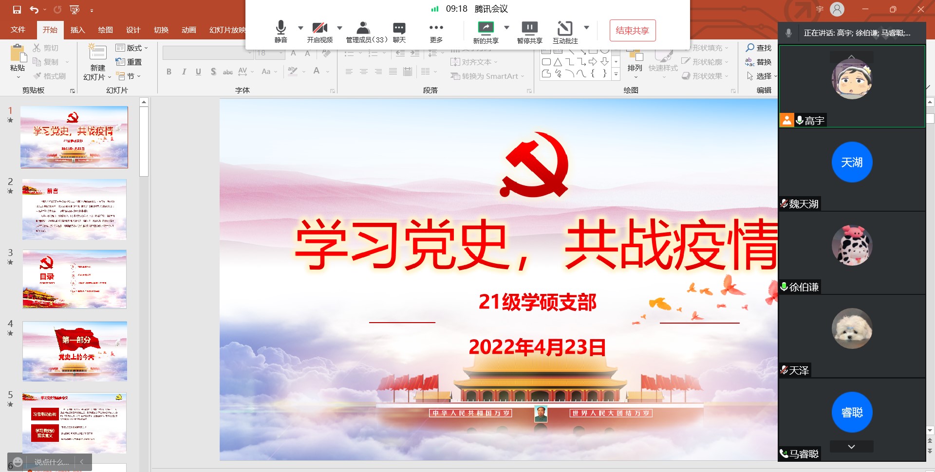 4月23日,2021级学硕支部开展了“学习党史,共战疫情”线上主题党日,整个活动分为“党史上的今天”“济南疫情形势”“《新时代中国青年》白皮书”“yl23411永利集团官网全体党员倡议”四个部分。