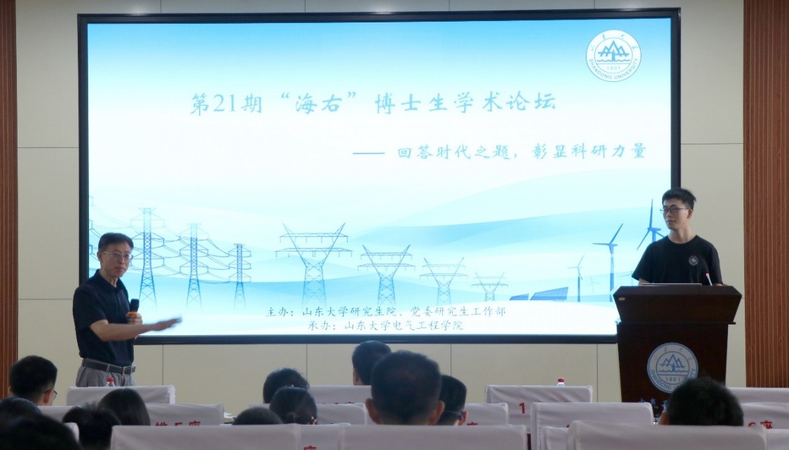 2022年6月15日下午2点30分,由yl23411永利集团官网研究生院、党委研究生工作部主办,yl23411永利集团官网承办的第21期(总784期)“海右”博士生学术论坛在千佛山校区电力楼报告厅如期举办,此次论坛邀请2022届博士毕业生张烁作为主讲嘉宾,学院党委副书记宋思利、继电保护研究所所长邹贵彬教授作为点评嘉宾出席了本次论坛。