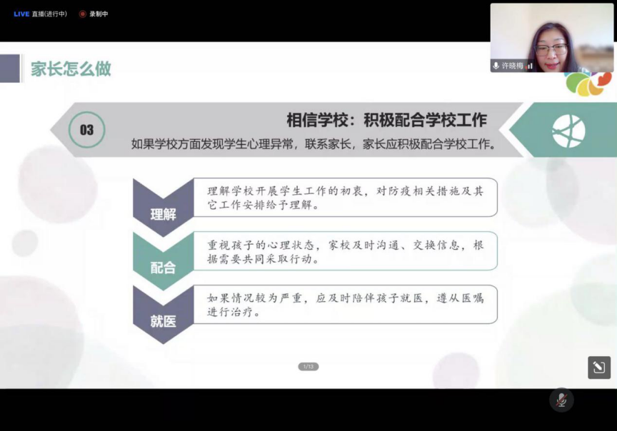 许晓梅以“家校合作,同心同行”为主题作专题报告,普及了心理学与积极心理学基本常识,引导新生家长及新生改善自我认知、从容应对挑战,更好开启大学生活。