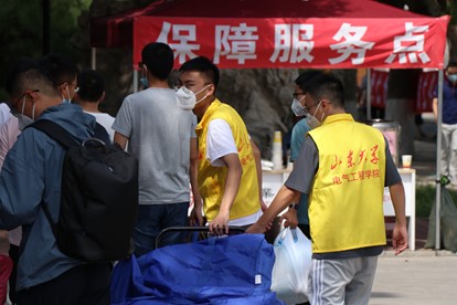 20日上午七点半,研会工作人员及志愿者到达指定地点,为即将开始的入(返)校工作做好充分准备。迎新工作以“严密防控,积极稳妥,热情周到,优质高效”为主基调,流程紧凑。新生报到流程包括扫码报到、签字确认、材料发放、打卡留念、核酸检测五个环节,整个流程实现电子化,新生从进入学院迎新区域到完成报到流程用时仅一分钟左右。为解决新同学行李搬运的问题,学院特设党员先锋岗(行李转运点),同学们可先将行李寄存,完成报到后再由党员志愿服务先锋队的志愿者协助搬运至宿舍。迎新现场气氛热烈,迎新工作有条不紊。现场工作人员认真负责,志愿者们发扬不怕苦不怕累的精神,积极帮助新生进行各项工作。学院对疫情防控工作认识充足,部署严密。在疫情防控的特殊时期,迎新现场的师生均严格遵守防疫要求,规范佩戴N95口罩,报到处防疫用品齐全,新老生和工作人员在迎新流程中均全程佩戴口罩并保持防疫间距。