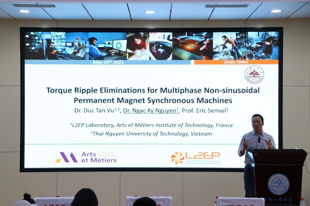 5月29日,由yl23411永利集团官网研究生院、党委研究生工作部主办,yl23411永利集团官网承办的第27期(总第1237期)“稷下风”研究生学术讲坛在千佛山校区电力楼四楼报告厅举行。本期讲坛邀请到法国里尔电气工程实验室的Eric Semail教授和Ngac-Ky Nguyen副教授主讲,讲坛由张文晶主持。