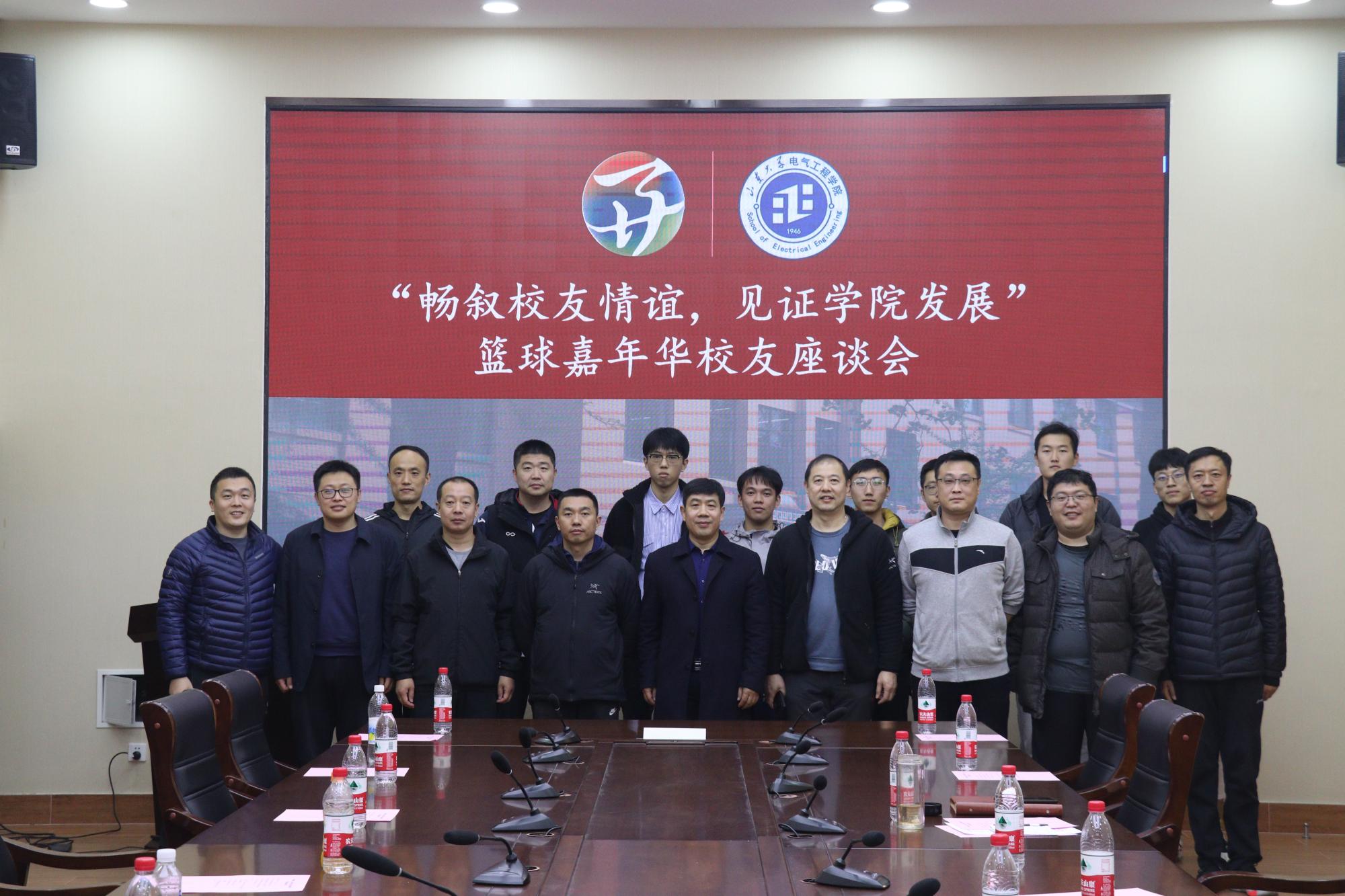 篮球赛结束后,校友与学院领导以及院篮球队共同出席了座谈会并进行亲切交谈。座谈会开始,校友们共同观看了“百廿山大栉风沐雨,七五电气薪火相传”院史回顾视频。视频中一张张老合影,一栋栋老建筑,展示了电气学院筚路蓝缕,破茧成蝶的艰辛历程;一桩桩历史事件,一页页现实影像也彰显了师生员工踔厉奋发,笃行不怠而取得的辉煌成就。视频唤醒了校友们久违的青春记忆,让他们回想起校园中的曾经足迹,引起了在场校友师生们的心声共鸣,座谈会气氛温暖而热烈。校友们自我介绍之后,yl23411永利集团官网党委副书记宋思利致辞,表示校友是电气学院宝贵的财富,之后要多多举行活动搭建起校友与学院同学老师互动的桥梁,电气学院永远都是校友们的精神家园。与会校友一一回忆了在母院的学习时光,讲述自己毕业以来的工作经历和现状,满怀对母校的怀念和对老师的感激,表达了多年后重回母校的感慨,校友们纷纷送上祝福,希望yl23411永利集团官网越办越好。