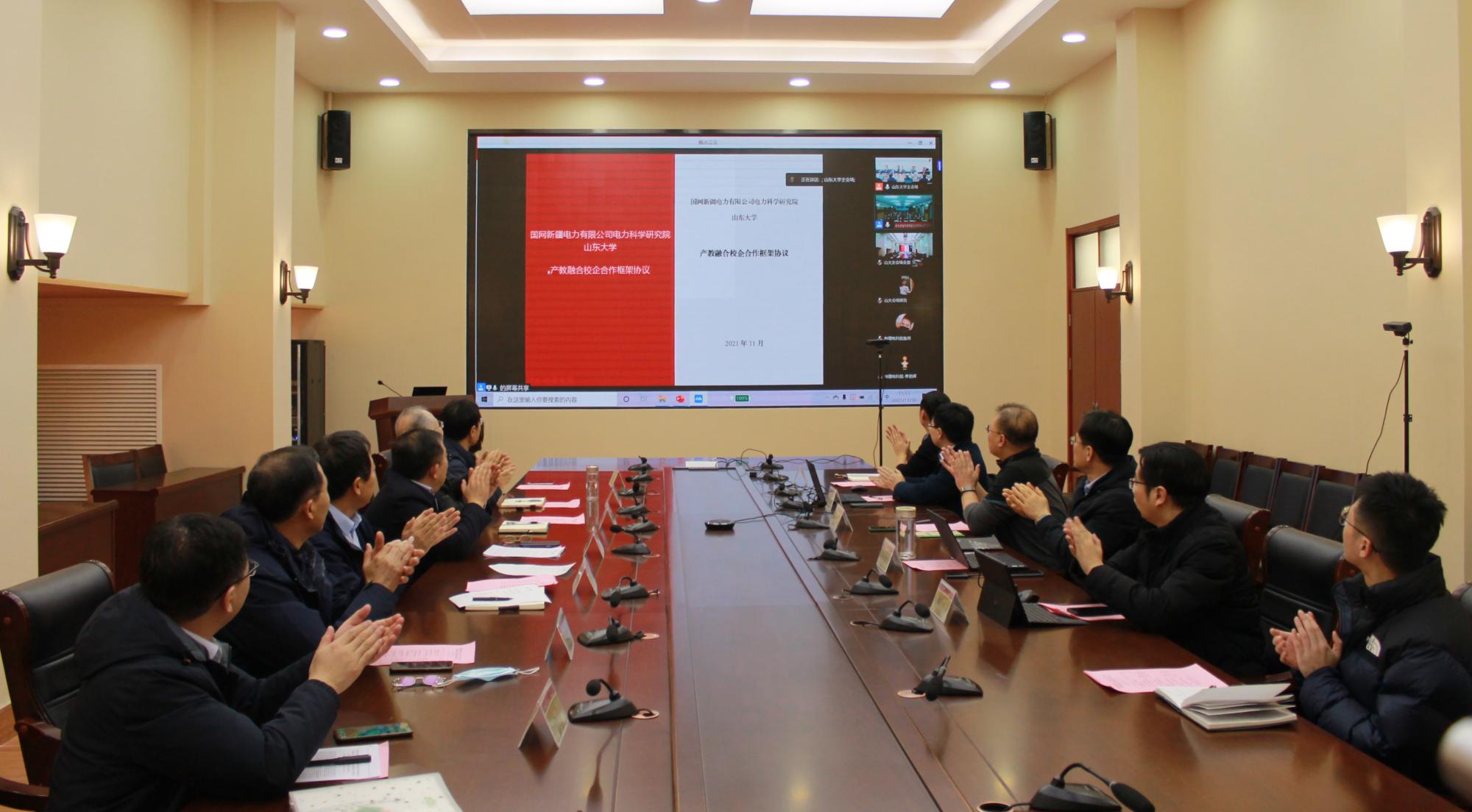 2021年11月30日,“国网新疆电力有限公司电力科学研究院-yl23411永利集团官网产教融合校企合作框架协议”签约仪式以线上视频会议形式举行,国网新疆电力公司副总工程师、国网新疆电科院院长、党委副书记张陵,国网新疆电科院二级职员尹军,yl23411永利集团官网党委书记刘相宜、常务副院长张恒旭等出席了活动。本次会议由尹军主持。
