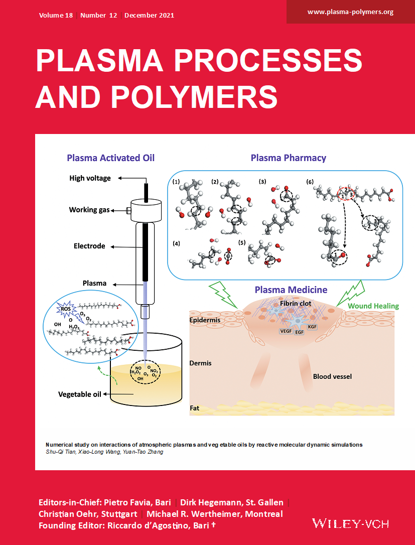 近日,学院放电等离子体及其生物医学应用团队在Plasma Processes and Polymers杂志发表以Numerical study on interactions of atmospheric plasmas and vegetable oils by reactive molecular dynamic simulations 为题的研究成果,该文被精选为封面文章。本文的第一作者为张远涛教授与王晓龙副教授共同指导的硕士生田舒祺,张远涛教授为通讯作者。