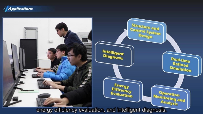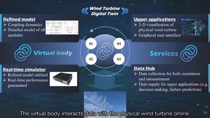 “风电机组数字孪生系统”项目针对当前机组设计、精细化仿真、运维等工作存在的问题,研发了机组级数字孪生的软硬件系统,实现了机组精细化数字映射。研发团队提出了考虑多物理场耦合及全生命周期特性的高精度机组仿真模型,开发了异构型实时硬件仿真平台以及上位机软件、三维动态模型等软件系统。该项目能够辅助风电设备制造商进行机组结构与控制系统设计、高精度实时仿真、运行状态监测与分析、能效评估、智能诊断等工作,具备广阔的应用前景。